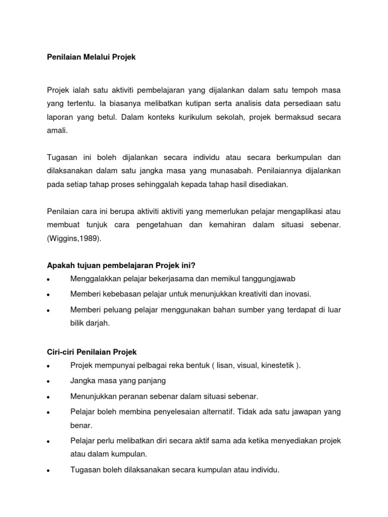 Penilaian Melalui Projek Tugasan Pdf