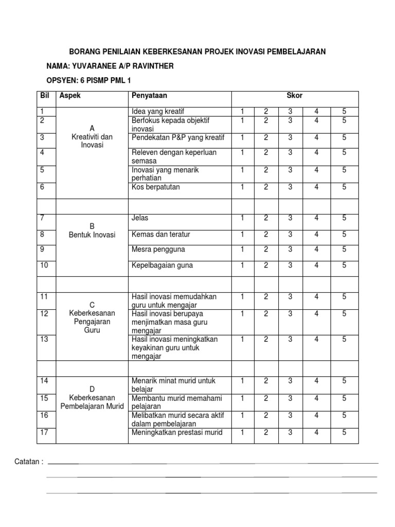 Borang Penilaian Keberkesanan Projek Inovasi Pembelajaran Pdf
